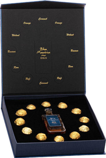 Luxusní bonboniéra Blue Mauritius Gold Rum Pralines 0,05l